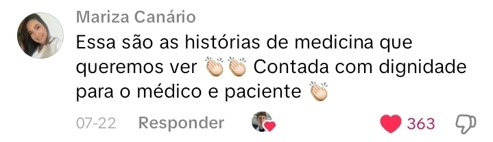 Dou plantões em um dos maiores e mais desafiadores prontos-socorros do Brasil. Nas redes sociais, meus vídeos de plantão alcançam milhões de visualizações e inspiram uma comunidade de mais de 579 mil seguidores.